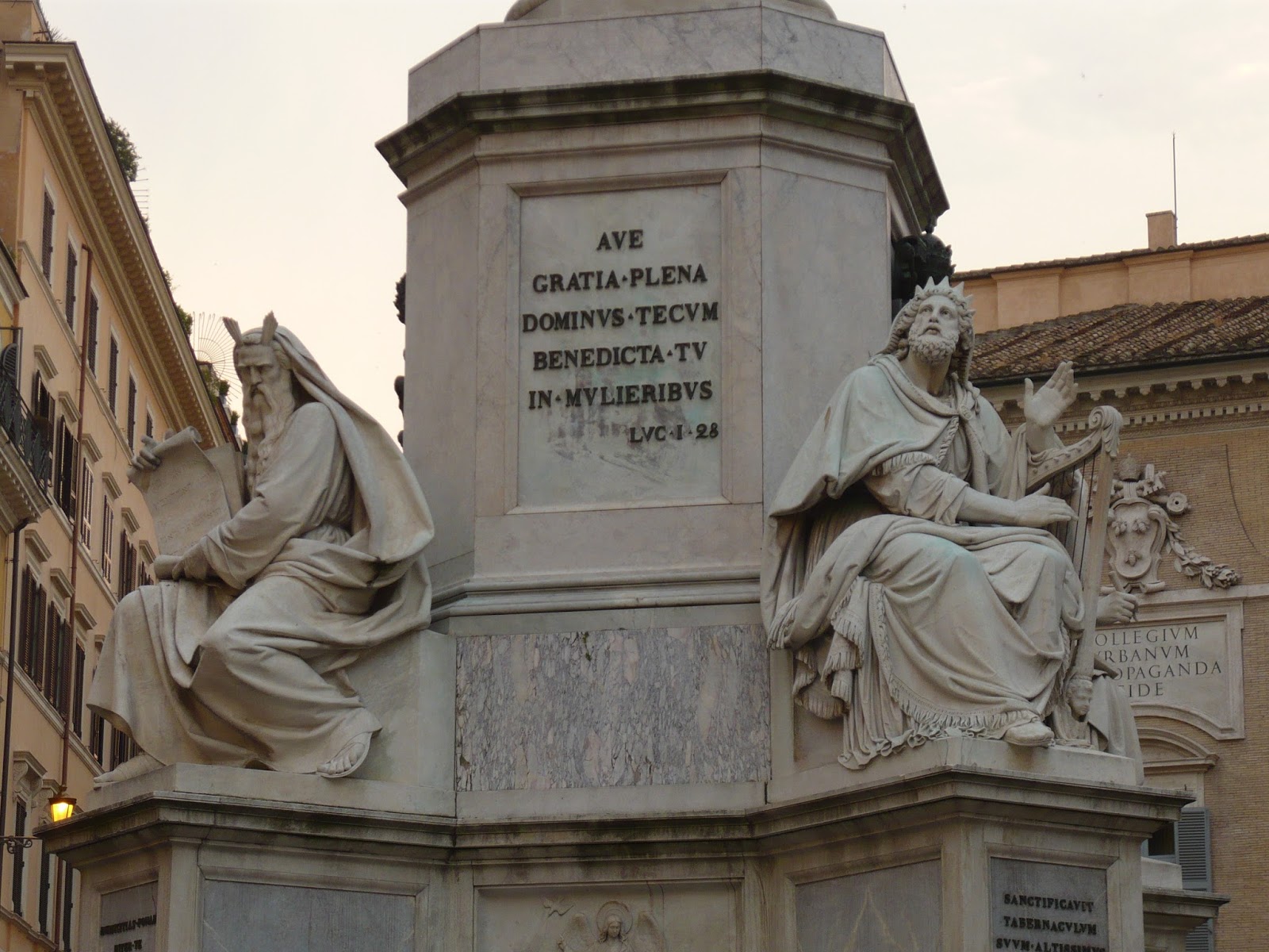 Representación del patriarca Moisés, y el rey David en la base de la Columna de la Inmaculada Concepción, en Roma.